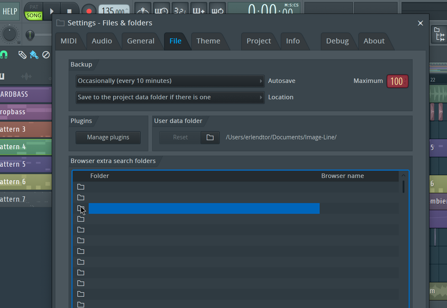 Gå til options i fl studio panelet og trykk så på "File settings".