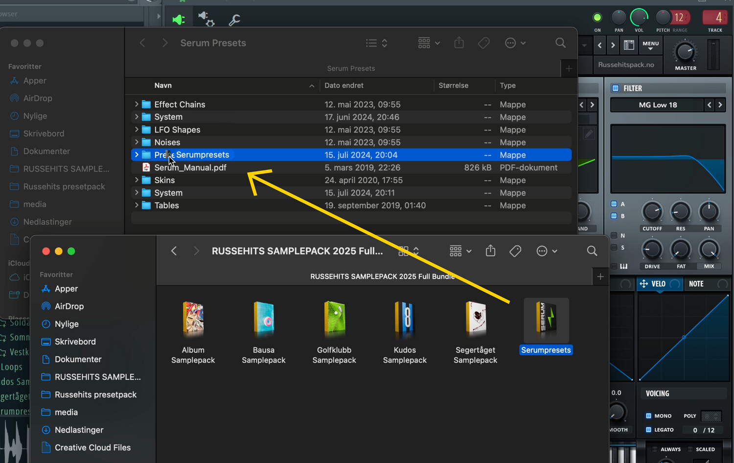 Gå til Menu i Serum og trykk på "Show serum Presets Folder"
